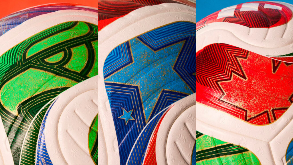 O Canadá é representado pela estilizada folha de bordo, enquanto o México é homenageado com a figura da águia, e os Estados Unidos, com a estrela. Detalhes em dourado estão presentes na superfície da bola, servindo como uma reverência ao troféu da Copa do Mundo