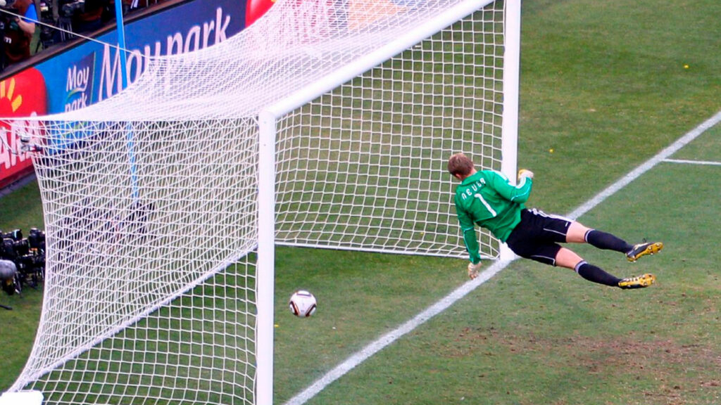 Em 2010, o meia Frank Lampard viu a Inglaterra ser eliminada pela Alemanha na Copa do Mundo, em um jogo que ficou marcado por um gol seu que, apesar de ter cruzado a linha em mais de 30 centímetros, não foi validado. Foto: Getty Images.