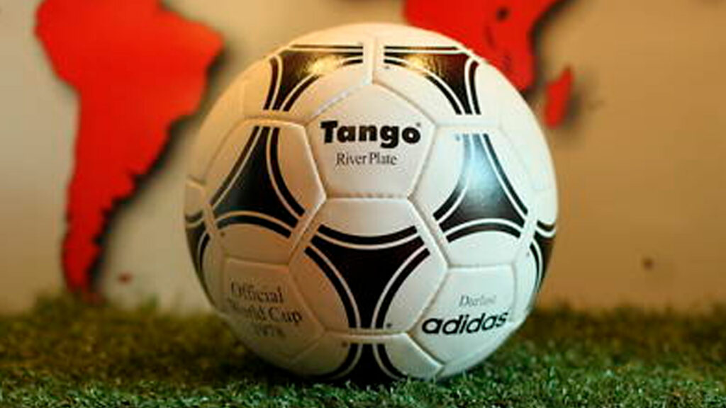 A Tango representou uma verdadeira revolução em design e durabilidade. Utilizada na Copa de 1978, na Argentina, ela manteve o padrão de 20 gomos, mas inovou ao adicionar um design de “tríades” pretas que criavam a ilusão de 12 círculos idênticos em toda a superfície da bola. Essa aparência se tornou a base estética para as bolas das Copas seguintes, com variações que duraram até o modelo da Copa de 1998.