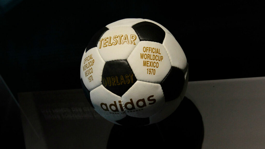 A Telstar é a bola mais icônica de todos os tempos. Lançada na Copa do Mundo de 1970, no México, ela foi a primeira bola oficial da Adidas no torneio e a primeira a utilizar o famoso design de 32 gomos. Esse padrão preto e branco foi pensado para ter a máxima visibilidade nas televisões em preto e branco da época, se tornando o símbolo universal de uma bola de futebol até hoje.