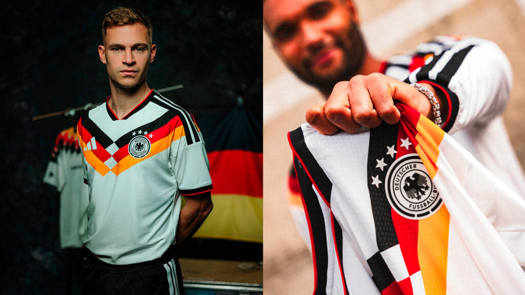A Alemanha sempre entrega mantos que são sinônimo de classe. Dessa vez, o design é inspirado nos dois últimos títulos dos germânicos: 2014 e 1990. O branco predominante tem destaque um chevron, ligando as mangas ao peitoral, em três faixas nas cores da bandeira alemã, fazendo uma mescla das camisas que conquistaram o globo.  A sobriedade deste modelo permite que ele seja usado em qualquer ocasião, reafirmando por que é tão buscado por quem quer comprar camisas de futebol de elite.